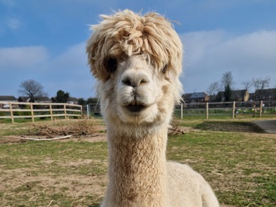Popcorn is our quiet, sweet alpaca is at the bottom of the herd. He is a wonderful alpaca to trek with, going at a nice slow pace. He is very shy however and not keen on being touched, but loves a selfie!